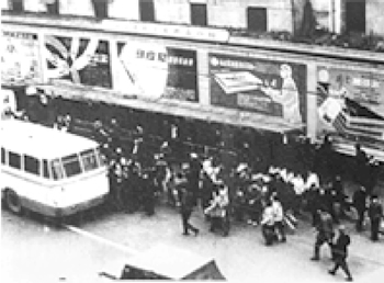 上世纪80年代初江汉路上挤公交车的情景