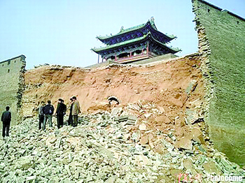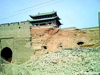 据《山西商报》报道10月17日中午2点30分左右,山西平遥古城南城门城墙突然向外坍塌,数千块一尺宽的青砖瞬间倾斜下来。