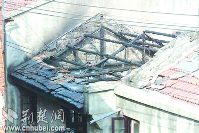 昨日上午,记者在现场看到,该处是一栋砖木结构的老房子,二楼两间房屋内的物品全部被烧毁,只剩下几根房梁。