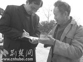 问清来访者的姓名后,老人即兴制谜歌一则:“耳听关山炮声,供梭缺木靠人,手握三寸钢笔,描绘荆楚画帛。(谜底:郑俊,从事记者工作)”并有眼有板地唱起来。