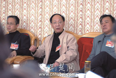 昨日下午,出席省政协九届三次会议的吴人亮(中)委员在分组讨论时发言。 荆楚网(湖北日报)记者王威摄