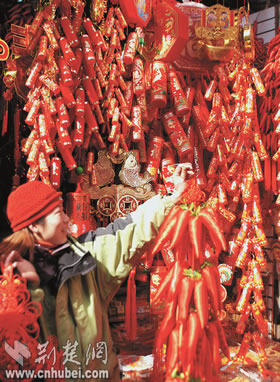 春节将至,人们纷纷来到武汉市汉正街购买喜庆的装饰品来扮靓家居,同时也希望自己能过个喜气洋洋的春节。