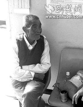 昨日下午,胡爹爹被江汉区李家墩派出所民警接走了(如图)。警方吁请认识胡爹爹的读者,与该所联系。