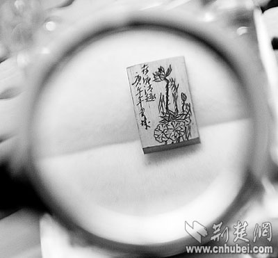 荆楚网(楚天都市报)(记者何君辉实习生周中华)写意的中国山水画,形态各异的花鸟虫鱼,憨态可掬的国宝大熊猫,风格迥异的诗词……承载它们的,竟然是如米粒大小的象牙片或动物骨片。昨日,记者在微雕艺人童洪斌家中,手持放大镜,领略了他的微雕绝活。