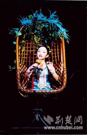 9时30分,终于轮到张琪慧上场了。只见她坐在吊篮里,身着对襟民族服装,头扎小辫,一张精致的小脸格外可爱。随着那或清脆、或婉转、或轻快的葫芦丝声响起,身后6名聋哑小女孩翩翩起舞,仿佛让人置身于月夜下傣家的竹林里,一对对恋人正在窃窃私语,互相倾诉着爱恋。