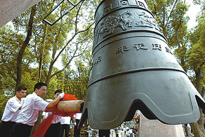 9月3日,在上海淞沪抗战纪念塔下举行的“和平之钟”落成仪式上,上海各界代表撞响“和平之钟”60响,以纪念中国人民抗日战争暨世界反法西斯战争胜利60周年。