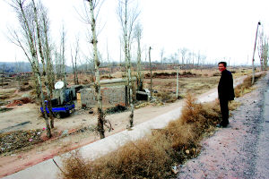 麻镇刘家坪村,村里显得异常冷清,路上看不到几个人。萧命一家五口是2001年走的,听村里人说去了鄂尔多斯的东胜。家里的窗纸已经被风撕裂,一辆破旧的机动三轮车静静地依在墙角,大门上还留着主人美好的愿望:“门对青山千里秀/家居福地四时春”。只是这片黄土地并非他梦中的福地。刘家坪村有一个小组,组长叫付二,今年48岁了,在村里还算年轻人。6年前刘家坪是这一带的富裕村,全村有800多人。从1998年起这里一直干旱,年轻人都出去打工了,有的甚至举家迁徙,现在村里剩下400多人,大多是老弱妇孺。村里有人过世,抬灵柩的8个壮年人都找不齐。这个比例在这一带是比较小的,再往山上走,十几户人家的小村子,走得只剩下三四户也很平常。