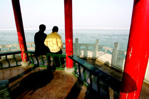 山西河曲著名的西口古渡如今已经变成美丽的黄河广场,成了年轻人谈情说爱之地