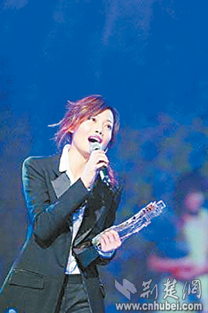 容祖儿黑西装配白衬衫,表现出现代女性干练、率性的一面。
