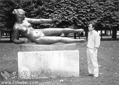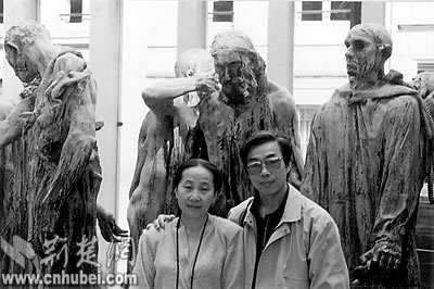 唐小禾、程犁在巴黎罗丹的作品《加莱义民》前留影。