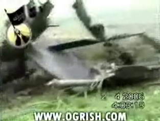 在这段录像中能够明显地看到直升飞机的残骸,几名男子拖着一具仍在燃烧着的尸体,口中还高喊着“真主伟大”的口号。此外,录像中还能听到有人在一旁叫着:“过来,过来,帮我抬一下。”