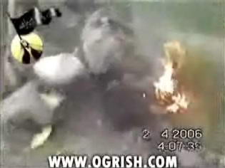 武装分子焚烧疑为美军士兵尸体录像截屏图。