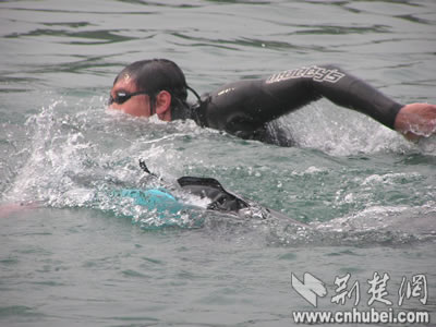 荆楚网消息 记者吴彬彬 实习生喻敏24日长阳龙舟坪镇报道:今天上午9点20分,张健纵渡清江横渡队4男4女8名队员从长阳广场码头下水游到永和坪,进行了约半个小时的适应性训练。这是他们正式进行横渡赛前的第5次下水训练,最后一次时间是明天上午。到目前为止,参加横渡赛的6名队员的名单还没有确定。