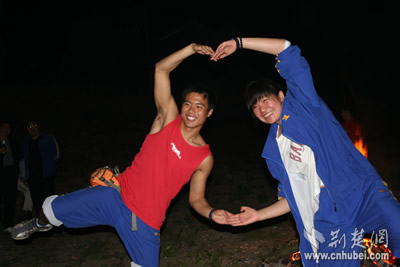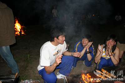 张健客串的主持人,宣布篝火晚会开始,一板一眼,还挺是那么回事呢!