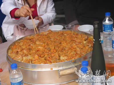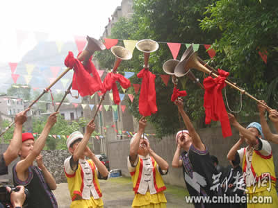 荆楚网消息(记者谢祥、喻敏、孙凌、程评、吴彬彬4月26日长阳渔峡口镇报道)今天中午,所有来宾们在长阳渔峡口镇享受了由东道主精心准备的土家特色大餐。在用餐之前进行的土家族特有的长号表演令大家大开眼界,用餐中他们特有的盛菜器皿、添饭方式和饕餮大餐让人难忘。