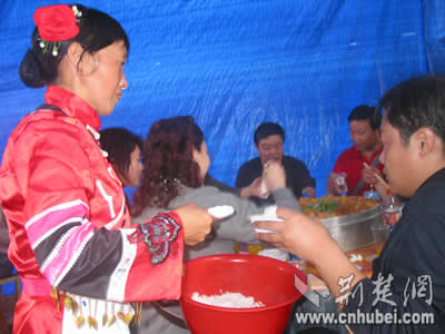 土家人以这种淳朴的方式来款待客人,希望他们能吃饱吃好。