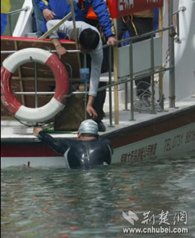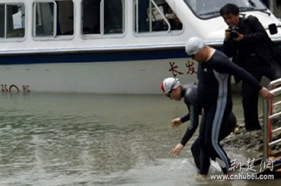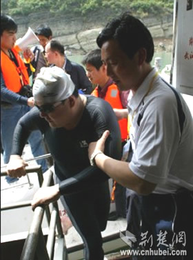 张健与张婕准备入水