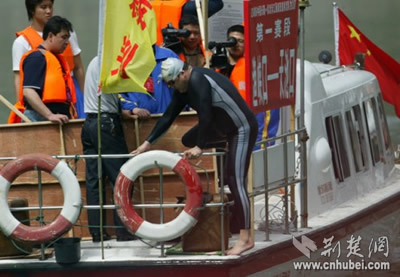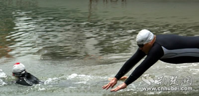 组图:张健领游1500米后起水(图)