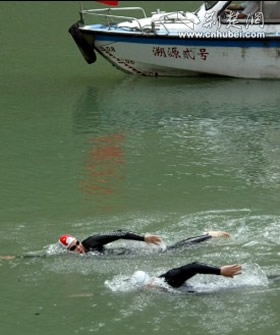 两人奋力游向前方