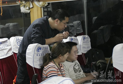 荆楚网消息(记者程评、孙凌、吴彬彬、谢祥、喻敏4月27日报道)已经是晚上23点33分,《体育周报》、《三峡文学》等媒体记者还蹲在船头、坐在玻璃茶几边缘,盯着笔记本电脑和手中的采访本敲敲写写。