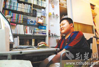 他崇拜同样瘫痪在轮椅上的英国科学家霍金。听说霍金近日来华访问,陈令飞好羡慕:真想见到他。他喜欢写日记,自省、谈人生、抒理想,关注国内外大事,甚至写青春小说。到现在,日记本摞起来已经有一人高。“我的名字里面有一个‘飞’字,就是应该放飞自己的心灵,做一个心灵自由的人。”
