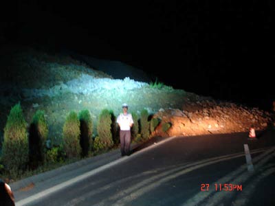 交警守候在塌方路段