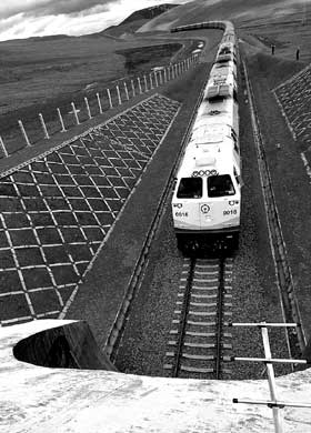 青藏铁路承载的东西太多。我们深深感受到,正是有了这些建设者,有了他们的付出,才有了青藏铁路的提速延伸,才有了人类对大自然更高层次的征服。在战胜自然的同时张扬生命,在获得生存的同时赢得升华。