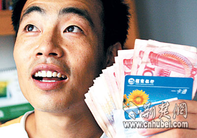刘象涛是中南财经政法大学2005级行政4班的研究生。前天晚上,他刚从山东老家返校,来到位于紫阳路与首义路交会处的一家招商银行取钱。当他正准备插卡取款时,发现取款机的出钱口放着一沓钱,再细看时,还有一张卡在取款机内。
