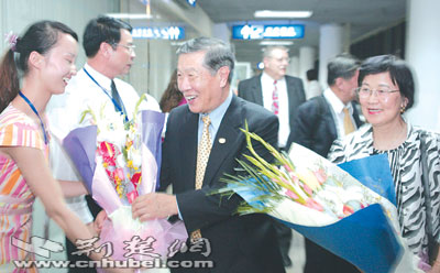 李昌钰飞抵武汉,随行的有他的太太宋妙娟以及两位助手。