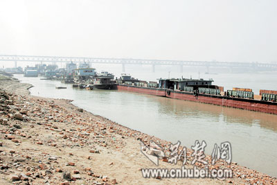 受上游涨水影响,长江汉口段水位昨日涨至16米,较前日上涨0.2米,并继续呈上涨趋势。在武昌月亮湾码头,原本靠岸的驳船已被上涨的江水慢慢“移”至江中。