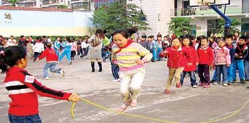 http://www.cnhubei.com/200611/ca1207514.htm">天气转凉做广播操有点冷 梨园小学学生跳绳锻炼