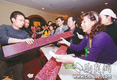 北京“湖北文化周”期间,武当剑成为首都市民最青睐的纪念品。(记者陈迹摄)