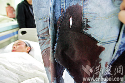 记者昨在神龙医院看到,刘先生头部被打破,头顶有个大包块,右臀部被刀捅伤,深达15厘米,另外全身多处软组织受伤。