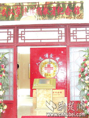 武汉市红十字会专职副会长谢江虹介绍说,为彰扬遗体捐献行为,市红十字会在石门峰遗体捐献者纪念碑旁,修建了遗体捐献者纪念馆。该馆面积为178平方米,已陈列了57名遗体捐献者的生前照片、生前物品、书画作品等。