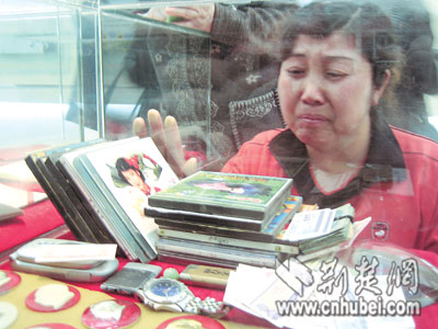 看到丈夫生前收藏的毛主席纪念章、佩戴的手表静静地躺在玻璃柜中,家住武昌杨园的汤燕女士无语凝咽(如图)。汤燕的丈夫杨继生是一位遗体捐献志愿者,去年3月,49岁的他因患肺癌去世。
