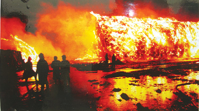 “起火了。”周志旺惊恐地叫喊起来。200多名消防官兵和数百名纸厂职工闻讯而至。此时,火借风势,呈三角形相临的14号、20号苇垛也燃起大火。火堆成了火海,芦苇场上空漫天飞舞着红色的火蛇。10多个钟头后,大火才被控制。此时,3个苇垛共1223吨芦苇已化为灰烬,损失50余万元。