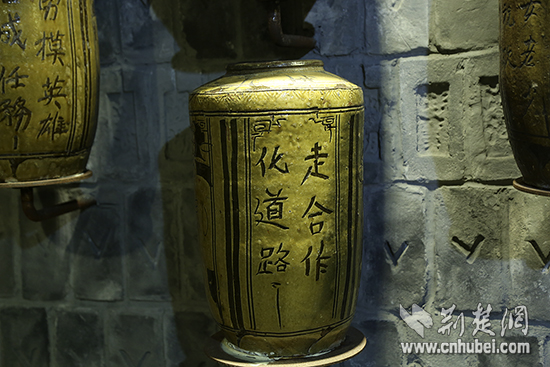 随时代变迁,解放后开始刻农民;上世纪五六十年代,陶器上都是“节约光荣”“劳动幸福”等口号。那时正是马口陶兴盛的时期,雕刻师傅日夜加班,制作出来的陶器都要用卡车来拉。