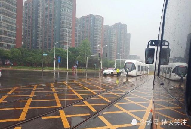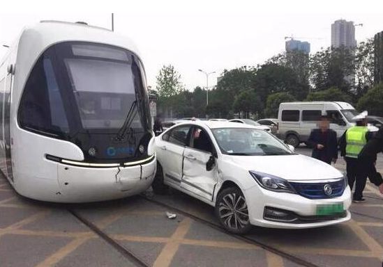 去年12月,在东湖高新区关山大道创业街路口,一辆有轨电车与一辆小轿车相撞。因为下雨小车车主视线受阻,加上是外地车辆,司机不知道此处有轨电车,所以导致了相撞。