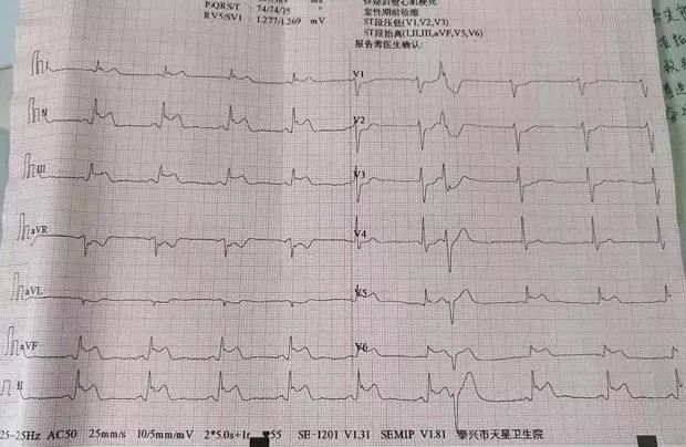 医护人员马上抢救,电击复律,但她最终还是没挺过来。事后证实,她患的是急性前壁心肌梗死。