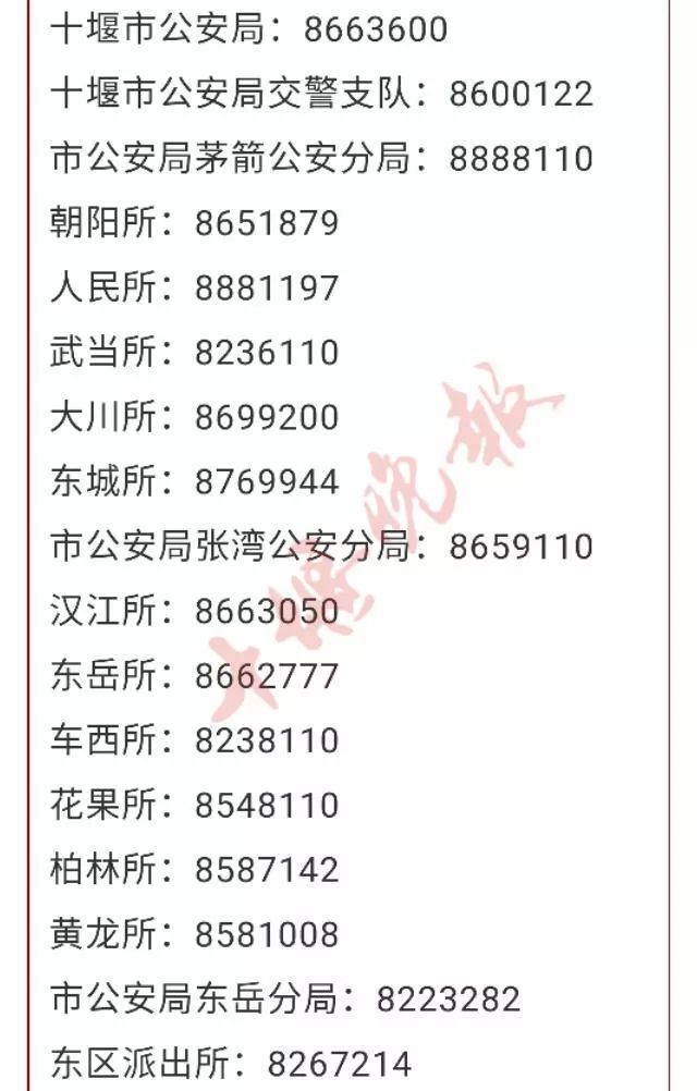 省高警十堰大队电话:5664122