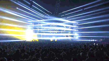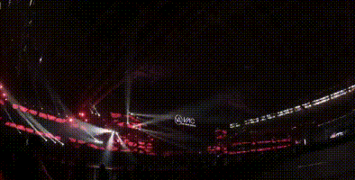 中心的巨大LED造型是VAC的“眼睛”,也是一个通向未来的“窗口”。仅仅中心区域LED的宽度就有40米,高度达到场地最高16米,两侧展开的造型船翅膀,展开面宽度达到30米,中心舞台区域就达到一场体育场级别的演出尺寸。两边延伸舞台分别像两侧延伸70米,打造超宽视觉,营造包围感。