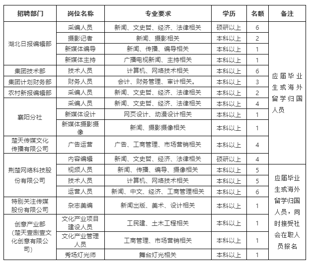 湖北日报传媒集团招人啦!!!