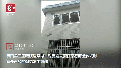 可就在燃放第二个烟花时,烟花瞬间发生爆炸,巨大的冲击波将窗玻璃震碎,玻璃溅了新郎和新娘一身,一对新人均不同程度受伤,在场一位年轻男子的左耳被炸出血,所幸并无大碍。