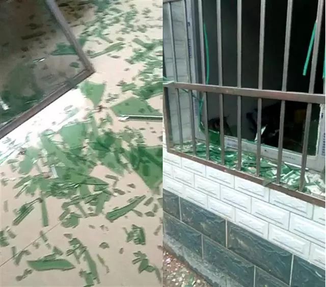 事发后才发现,周围邻居房屋的窗玻璃也被震碎,就连院门上焊接的钢花也被震落。