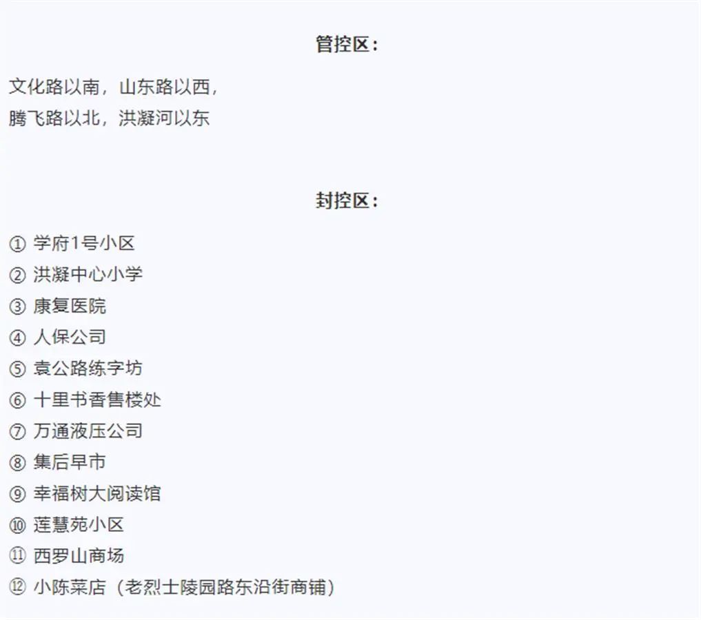 目前,五莲县当地根据确诊病例的工作地、活动地,将相关有一定传播风险的区域划为管控区,实行“区域封闭、足不出户、服务上门”。极目新闻记者梳理获悉,这些管控区包含有小区、小学、医院及多个公共场所。
