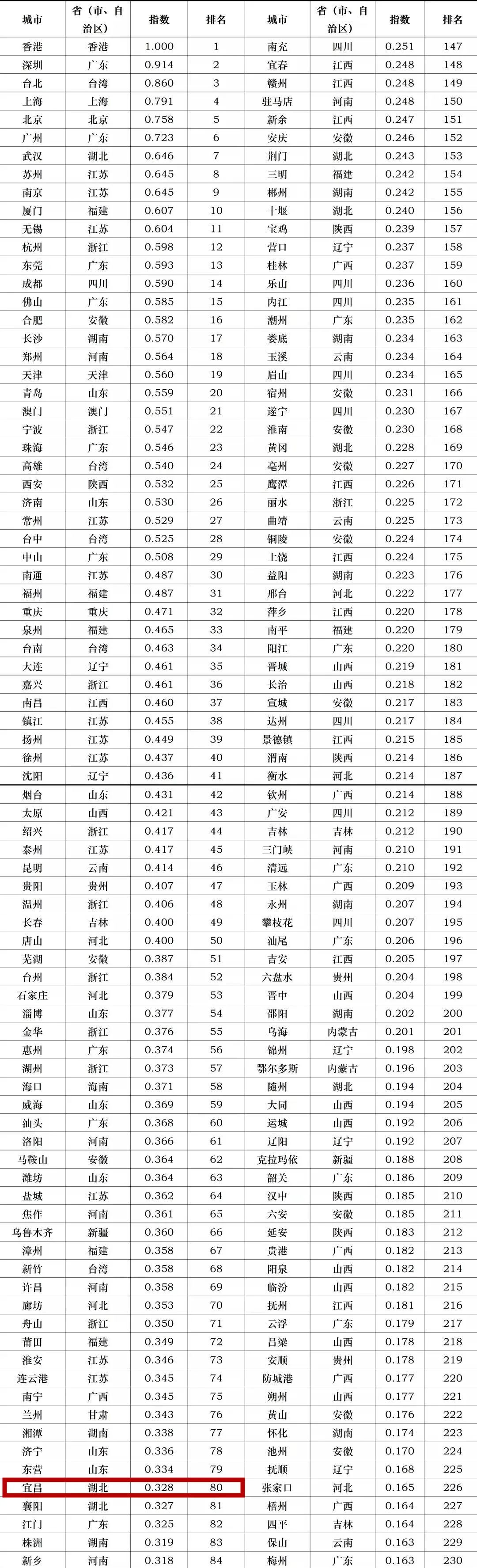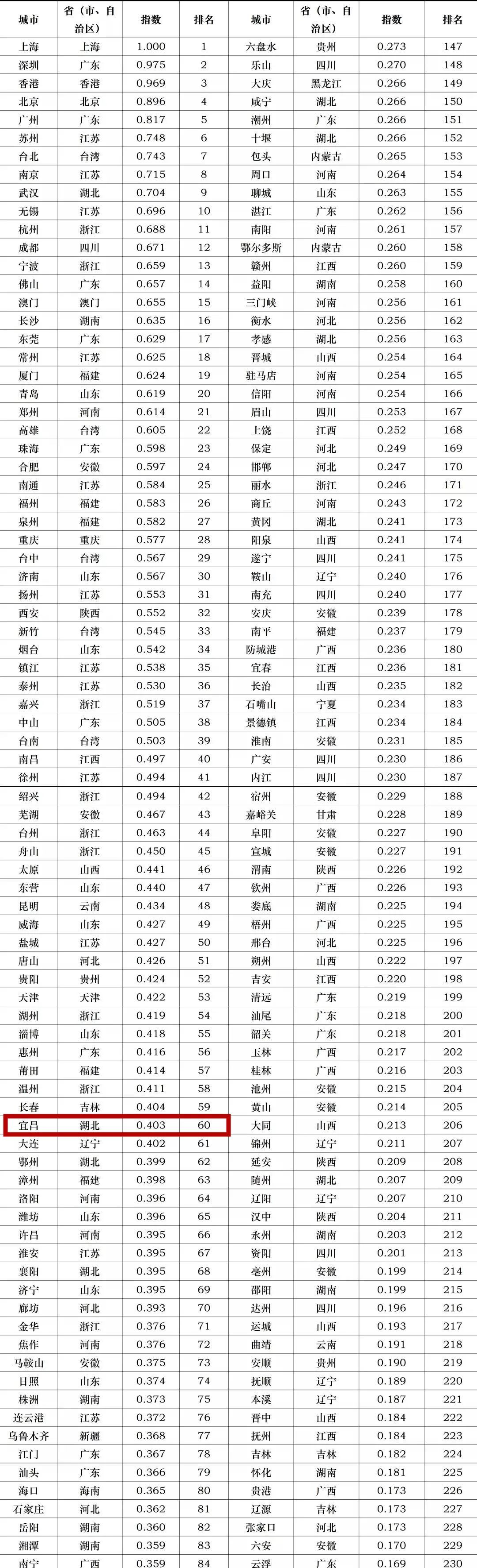 宜昌位列