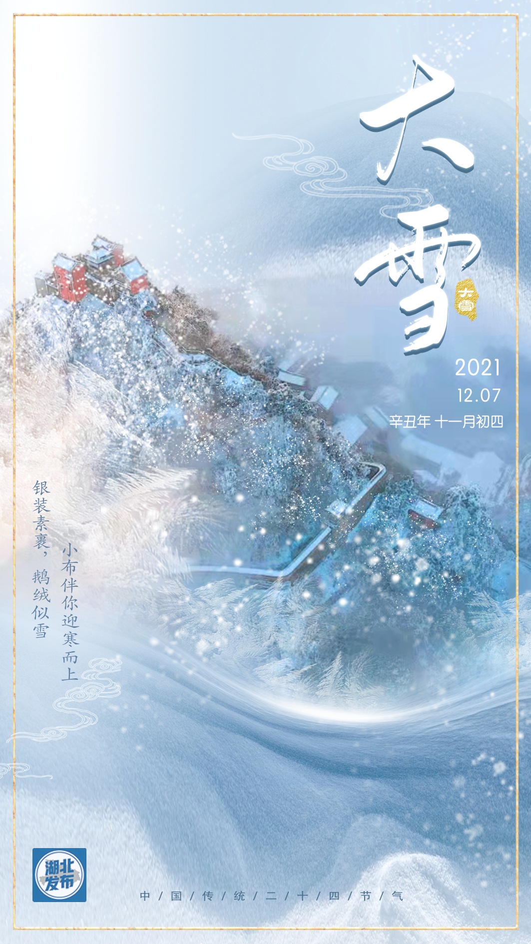预计今年大雪节气期间,湖北延续晴朗干旱为主的天气,西部高海拔地区偶有雨夹雪或雪出现,其他大部分地区还见不到雪花。