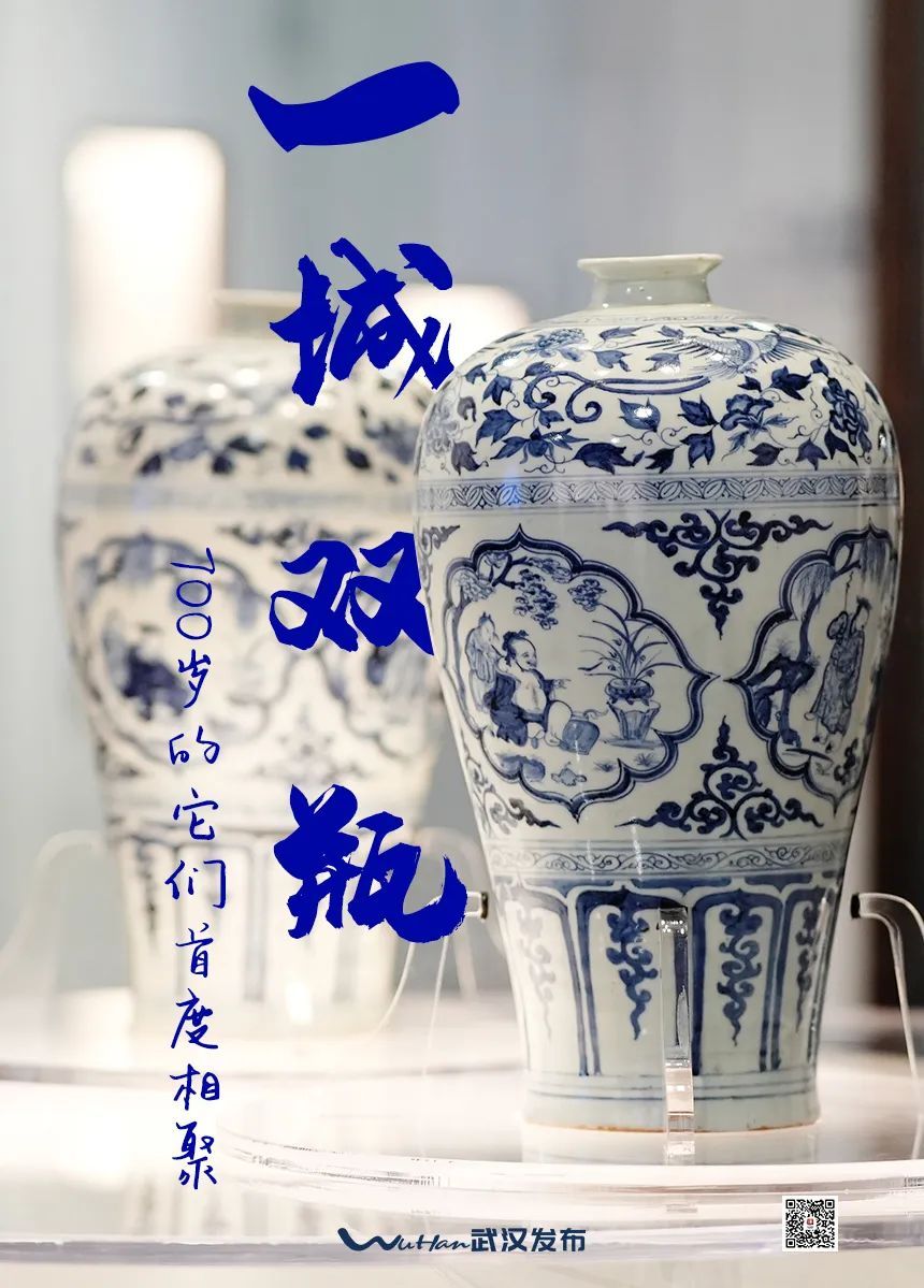 “元青花四爱图梅瓶”,是仅存于世的以人物图案为主题的元代青花珍品,国宝级文物,分别在武汉博物馆、湖北省博物馆入藏,一城两瓶,隔江相望。“5·18国际博物馆日”,双梅瓶“姐妹花”首度聚首。