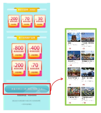 活动期间,进入同程旅行APP或同程旅行小程序,首页搜索框输入“湖北消费券”、“惠游湖北”、“湖北”、“湖北旅游”等关键词,进入惠游湖北消费券活动专题页。