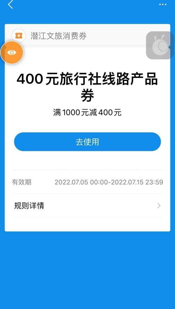 消费券领取后领取后点击“去使用”即可进入产品使用页面,下单立减相应金额。